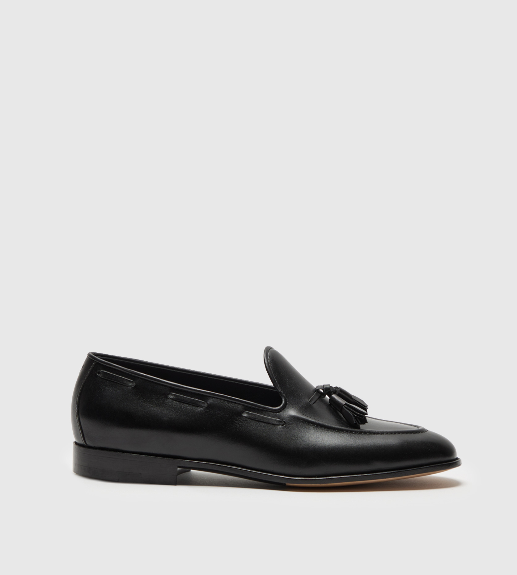 Our task was to create a tassel loafer fit to demand respect in the office while wearing comfortably for the long days in the field. Such a task we could only complete with an upper constructed of Annonay’s famous ‘cross hatched’ leather. With a texture unlike any other, this loafer will quickly become a shoe to be worn with confidence. Matching leather tassel on the upper with French piping around the entirety of the opening. Full goat leather lining for a lighter and breathable feel. Subtle ‘V’ stitch on the external counter. Finished with a single leather sole that is hand painted with our ‘V’ bottom. Stacked leather heel with a combo rubber top lift. Blake Stitched to stay both lightweight and flexible with every day wear.